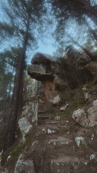 Continuando el recorrido, se llega al Área Recreativa del Navazo, un entorno ideal para hacer una pausa y disfrutar del paisaje. Desde aquí, la ruta serpentea por una pista forestal bajo un denso pinar, pasando por importantes abrigos rupestres como el de los Toros del Prado del Navazo y el del Tío Campano. Estos enclaves, con pinturas prehistóricas, son testimonio del antiguo uso de estos parajes por comunidades humanas hace miles de años.
